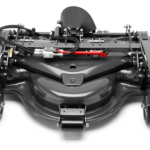 "High-performance 155 cm (61") Combi deck with hydraulic cutting height adjustment. An innovative technical solution from Husqvarna results in a combination deck with the cutting methods mulching and rear discharge included in one and same deck. Heavy-duty deck design consist of 1-piece stamped steel plate dimension 4,5 mm (7-gauge). Shaft driven with bevelgear. The attachment requires hydraulic kit. "