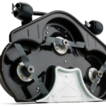 Hoogwaardig combidek van 112 cm (44") P524. Een innovatieve technische oplossing van Husqvarna resulteert in een combinatiedek met de maaimethoden mulchen en achteruitworp in één en hetzelfde maaidek. Heavy-duty maaidekontwerp bestaat uit gestanst staal uit één stuk bord.