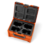 Husqvarna Accu Transport Box is een robuuste maar lichtgewicht en handige koffer voor maximaal 4 stuks Husqvarna 36V-accu's. UN3480-gecertificeerd voor veilig transport van lithium-ionaccu's. Bovendien zorgt de geïntegreerde inlaat voor een uitstekende thermische isolatie en een goede schokabsorptie tijdens het transport. Ergonomische handgrepen aan zowel de voor- als bovenkant geplaatst voor eenvoudige bediening. Het doordachte ontwerp maakt het stapelen van meerdere dozen mogelijk en door toevoeging van de Husqvarna multi-adapterplaat (afzonderlijk verkrijgbaar) kan de doos ook worden aangesloten op koffersystemen van derden.